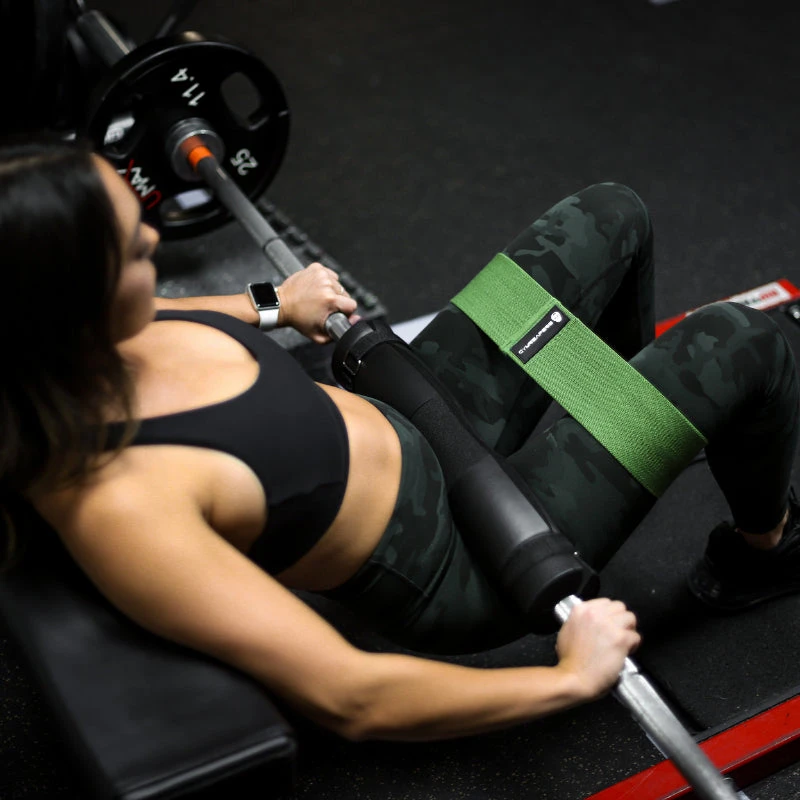The Grip Hip resistance band is enhanced to provide traction and friction, preventing slippage during training exercises. The rubber enhancement around the middle of the band improves gripping ability and forces more glute and hip engagement.